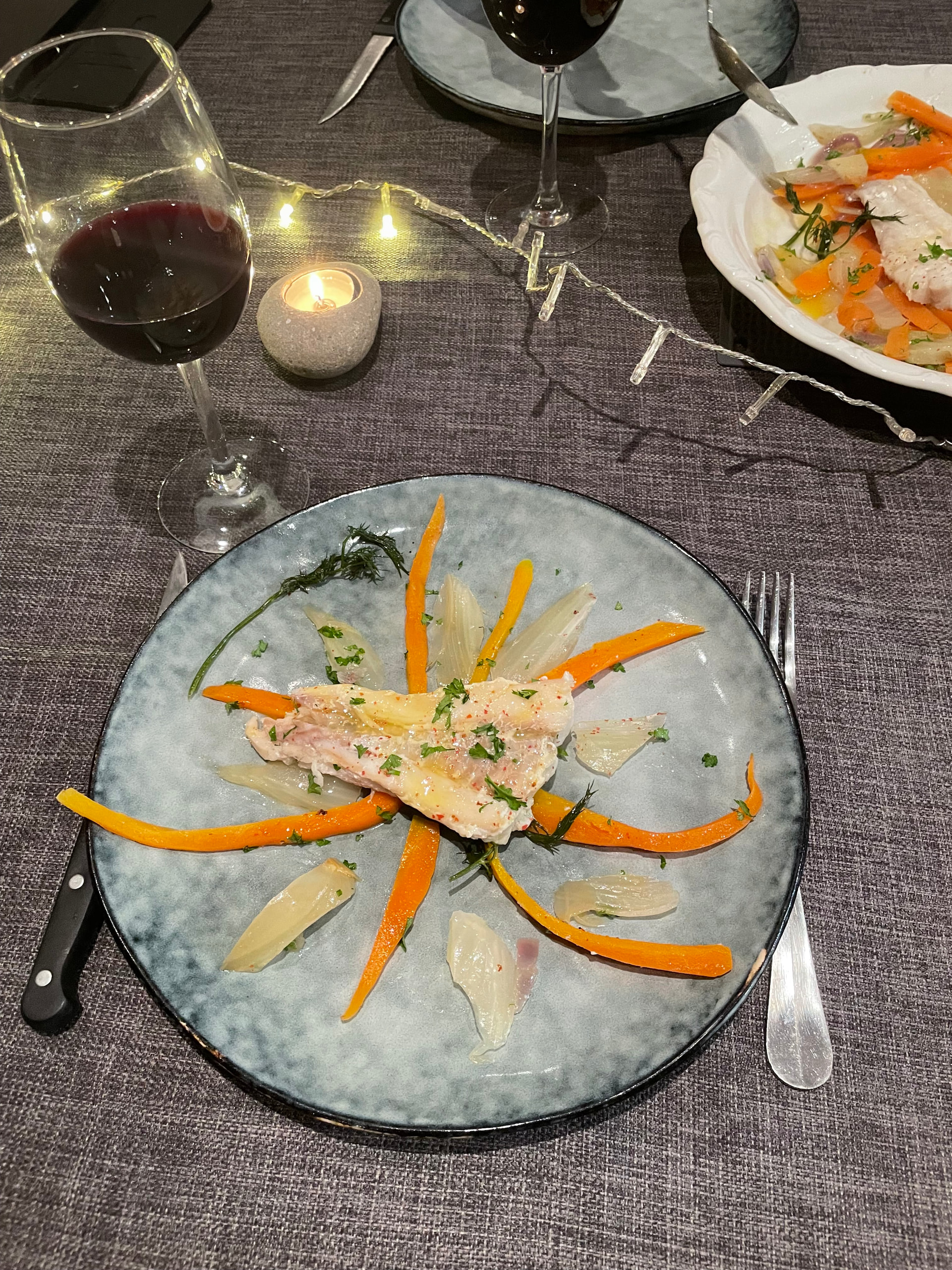 Recette de lieu noir sur lit de fenouil et carottes braisés sauce agrumes lien en dessous: